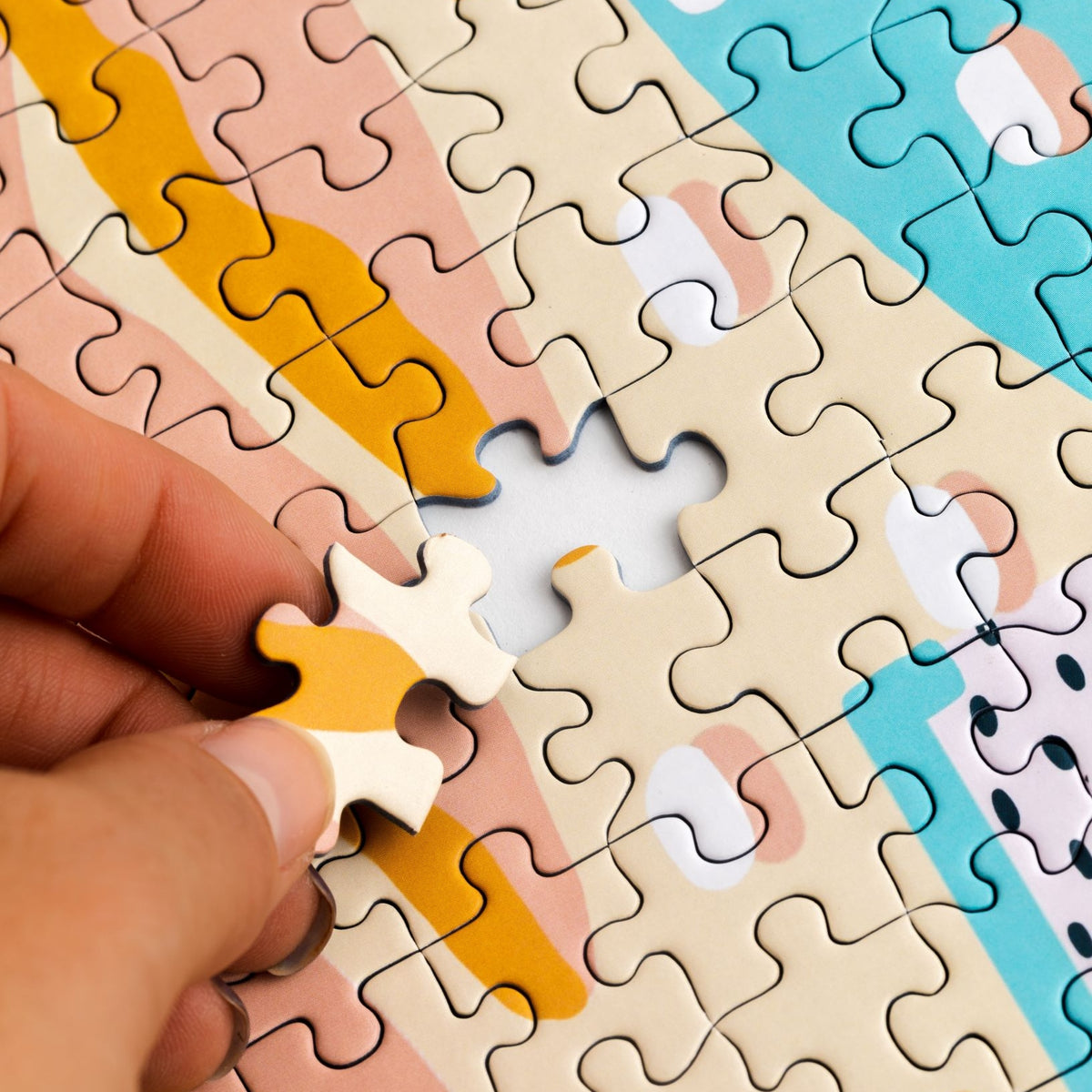 - The art was designed by the talented muralist, finger painter, and lover of colors, Juliana Lupaccino (also known as JuLu). Every box includes an insert with the full image to guide your customers' puzzling. Our puzzle pieces are unique shapes, which make puzzling more fun than your standard pieces. We pride ourselves on the high quality, soft-touch finish of our pieces, which is also anti-glare so no more ducking and dodging around lamp light.